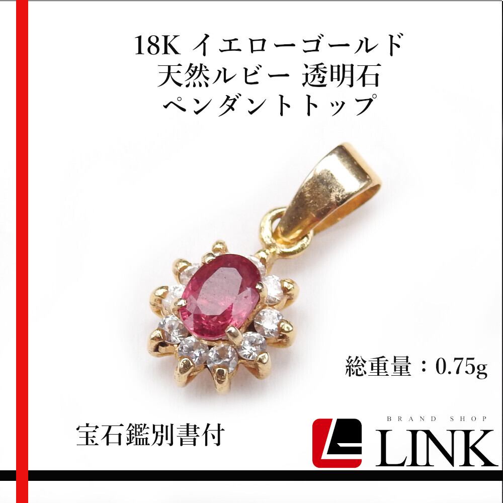 18K イエローゴールド 天然ルビー 透明石 ペンダントトップ 宝石鑑別書付