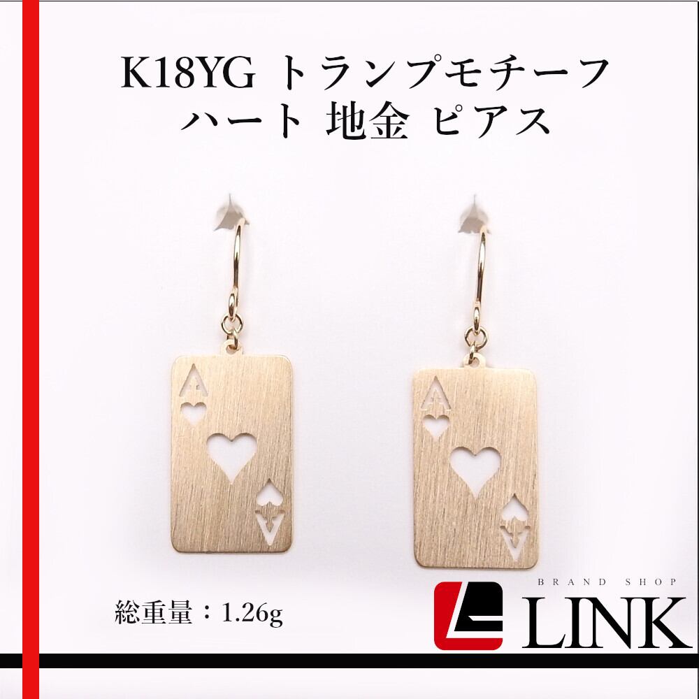 K18YG トランプモチーフ ハート 地金 ピアス レディース アクセサリー