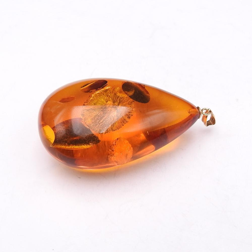 〔日本国内鑑別書付き〕大粒 天然琥珀 コパル K18 ペンダントトップ コハク