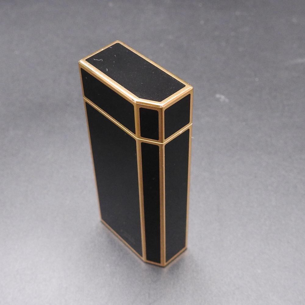 【着火未確認】Cartier カルティエ ローラー式 ガスライター 角 ブラック×ゴールド ロゴ入り スイス製 メンズ レディース