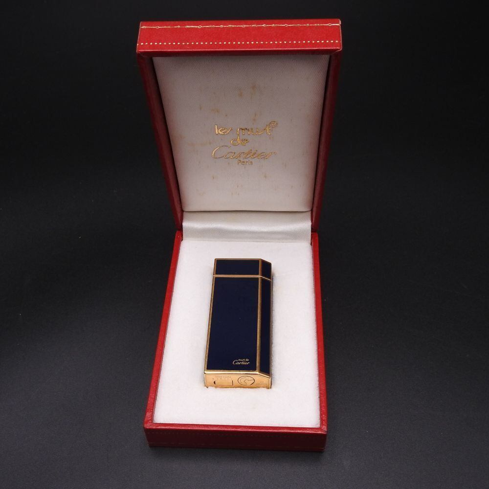 【着火確認済み】Cartier カルティエ 5角ローラー式 ガスライター 紺×ゴールド スイス製 メンズ レディース