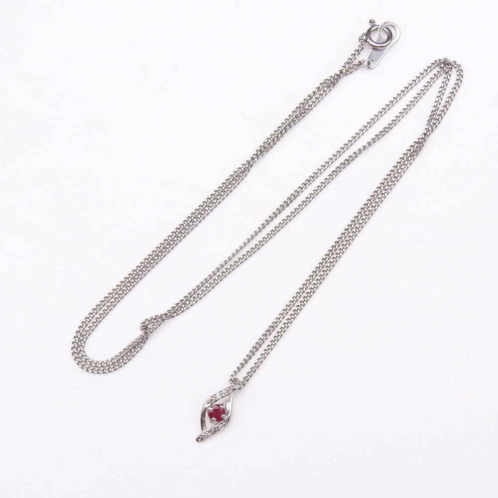PT950/850 プラチナ ルビー ダイヤモンドD0.04 ペンダントネックレス レディース 50cm