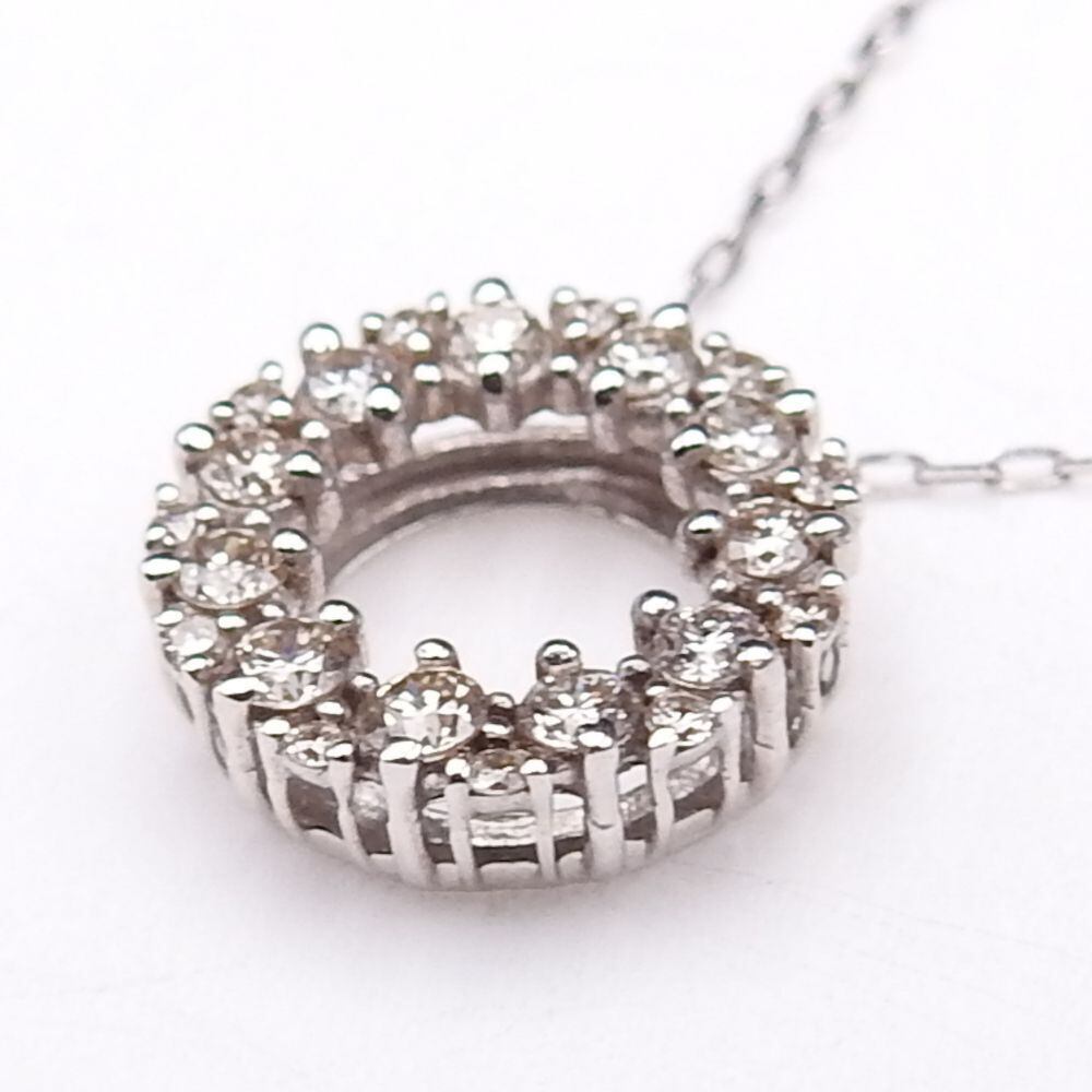 【商品名】K18WG ホワイトゴールド ダイヤモンド0.20 サークルネックレス レディース 40cm