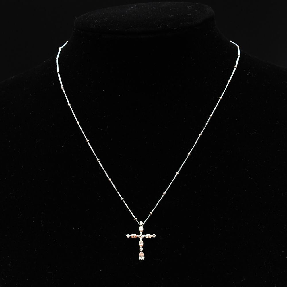 K18YG/K18WG ゴールド 色石クロスネックレス アクセサリー レディース ホワイトゴールド イエローゴールド