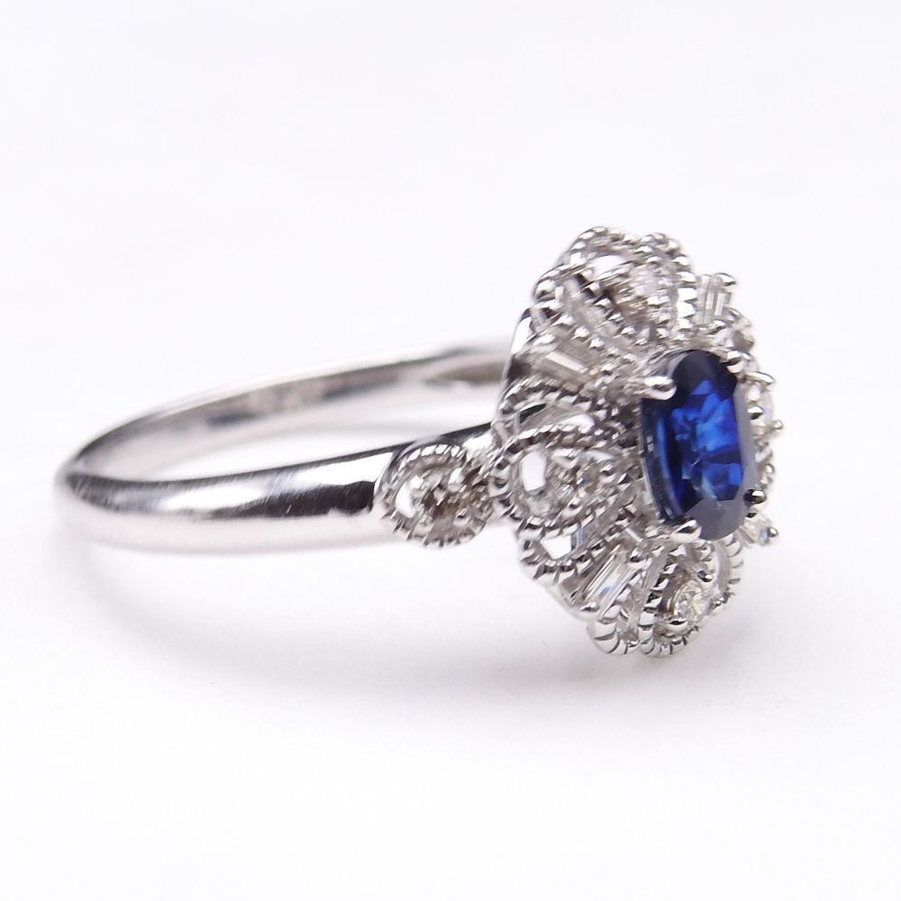 PT900 プラチナ 天然ブルーサファイアS0.55ct 天然ダイヤモンドFD0.14ct リング 16.5号