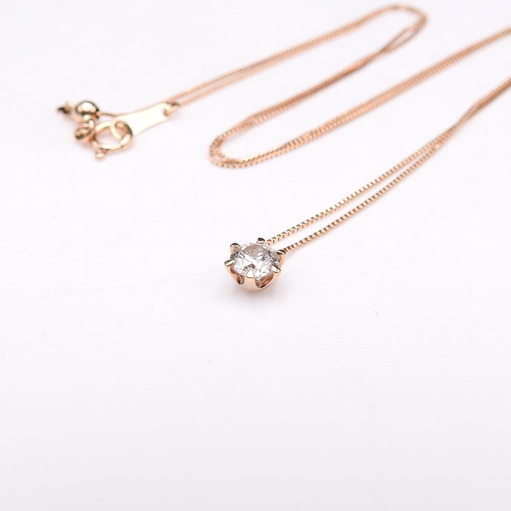 K18PG ピンクゴールド スルーネックレス ダイヤモンドD0.354 F/SI2/3EX H&C 宝石鑑別書付