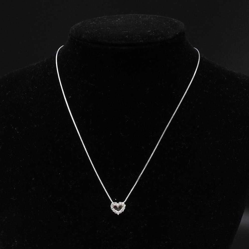 K18WG ホワイトゴールド ハートモチーフ ダイヤモンドD0.43ct スルーネックレス アクセサリー レディース ジュエリー