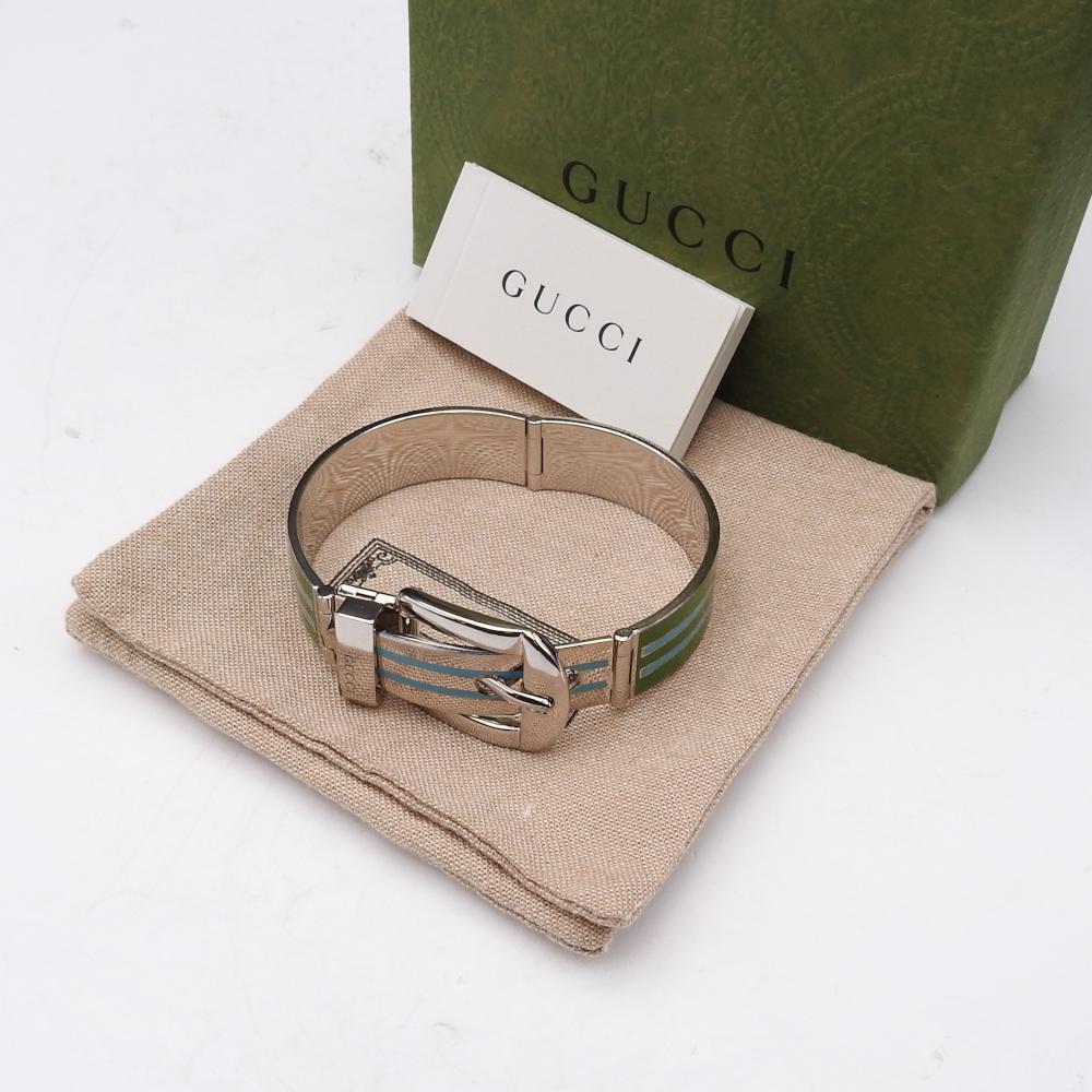 美品 GUCCI グッチ バンドデザイン ブレスレット グリーン×ライトブルー M 箱/袋付き